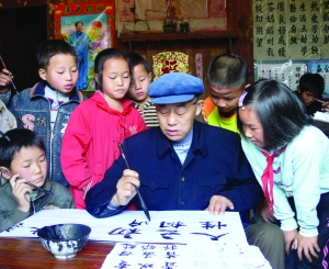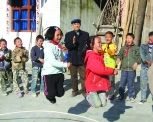 12月25日,龙山县的最低气温为摄氏零下2度。在该县桂塘镇肖家村一户村民的家中,20多名孩子在一名满头银发老者的指导下,认真地学背《三字经》。课间,老者走进里屋看看床榻上患病的老伴是否踢掉了被子,孩子们则聚集在屋前的石板坪上玩起了老鹰抓小鸡的游戏。