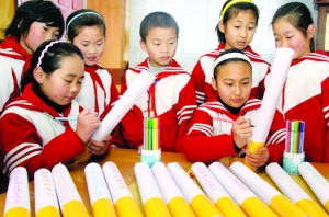 1月7日,山东省枣庄市红旗小学的学生在亲手制作的香烟模型上书写吸烟危害警示语,将其作为礼物送给家长,以劝导家长戒烟。
