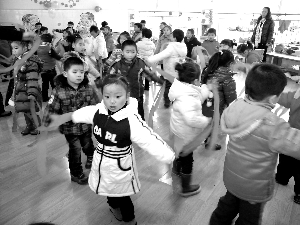 元旦之际,州幼儿园邀请家长来园与孩子们一道共迎新年。图为孩子们为爷爷、奶奶、爸爸、妈妈表演彩带舞。