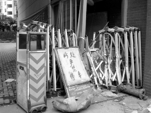 1月14日上午,吉首市民周先生给记者打来电话说,他入住的龙泉花园小区大门不知道被谁的车子撞坏,好几天没人管理。下午记者来到该小区大门发现,该大门已被撞得面目全非,就连大门后面的门卫室也未能幸免。“这属于无物管小区,经常出现偷盗事件。去年9月份,有十几户在同一时间被盗,损失高达十万元。现在大门被损坏,给我们的日常生活带来了极大的不便。临近春节了,家中储物越来越多,大门损坏无人管理,严重威胁到我们业主自身的财产安全。”周先生说,“希望肇事车主能够负起责任,把大门修整好。”