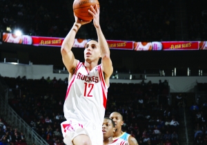 1月15日,火箭球员在比赛中投篮。当日,火箭在主场加时以105比110不敌黄蜂。大将马丁复出,拿下了26分。凯尔-洛瑞28分、6个篮板和7次助攻。