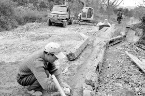 年关已接近,永顺县的很多村民小组都在加紧修筑通组公路或者是加紧维修已通公路,为确保来年的公路更通畅。图为永顺县回龙乡回龙村若大坪组的村民,正在维修2008年修通的公路。 唐启武 摄
