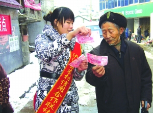 1月21日,泸溪县农村信用合作联社的工作人员在该县达岚镇墟场上开展反假币宣传活动。春节将临,该县针对返乡过年人员增多、市场购销活跃等情况,特组织金融部门工作人员巡回各乡镇墟场开展反假币宣传,旨在增强群众识别假币、抵制假币的能力。
