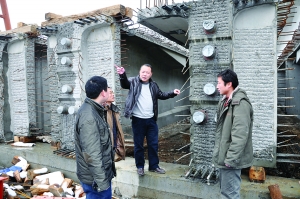 张花高速公司为了确保沿途工地安全,避免人畜和财产受损,狠抓春节安全管理,对于车辆、机械停放场地和在建桥梁等,用钢管做成围栏进行全封闭。图为永顺段18标项目部的负责人在工地检查。