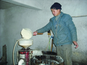 2月10日,永顺县吊井乡吊井村,大学生全家学正在用“浆渣分离机”打豆浆做豆腐。近年来,打工返乡的全家学,依靠科技,改变传统手工操作,用蒸汽加热消毒,在豆腐的品质上深下工夫,他生产的豆腐以特有的“保水性好、韧性强、有劲道、白嫩爽口”等品质,备受市场青睐,走出了一条山区大学生自主创业致富路。