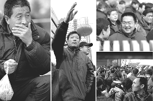 2月19日,在济南市劳动职业技术学院考点外,考生家长在等候自己的孩子(拼版照片)。