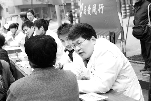 当天是第11个中国青年志愿者服务日,保靖县卫生战线团委、县人民医院团总支青年志愿者服务队联合湘雅医院扶贫专家组在迁陵镇举行 “关爱生命,关注健康”大型健康义诊活动。志愿者们为群众免费进行血压测量、心电图检测,开展常见疾病检查和健康咨询,并现场进行急救常识示范操作。 杨 烜 摄