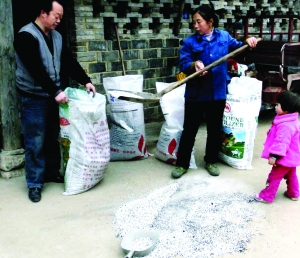 3月2日,在全国种植卷丹百合面积最大的龙山县,一户土家族农民正在按比例调配百合专用复合肥,为适时对百合追肥做好准备。去年,龙山县农村信用社在百合重点乡镇贷款1000多万元,帮助农民购买百合种和专用肥料,种植卷丹百合5万亩,产量5万余吨;今年,龙山县的卷丹百合种植面积达6万亩,农村信用社加大了对百合产业扶持力度,为农民提供优良的金融服务。