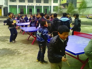 3月11日,龙山县内溪学校的学生在崭新的球桌上打乒乓球。该校一负责人介绍,该校在财力十分紧张的情况下,挤出2万多元购置了6张乒乓球桌,以丰富师生的课余生活。 蒋星明 姚 辉 摄