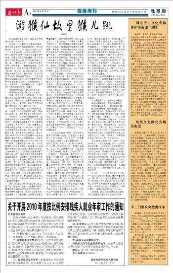关于开展2010年度按比例安排残疾人就业年审工作的通知