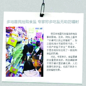 吃盐无助防辐射 专家:抢购碘盐的 心理传染更恐怖 不管核辐射会不会污染海水,进而影响到今后食用盐的提取。但可以肯定的是,面对核辐射的巨大危害和相关说法面前,人们的这种不自觉的“过度作为”的心理“辐射”所产生的影响已经显而易见。 据研究,在面对灾难时,75%的人会出现恐慌心理,极少部分人处于理性的状态。对于大部分恐慌人群,需要正确地引导他们去认识灾难的本质。专家表示,主要还是依靠政府和主流媒体及时发布官方正确、透明的灾难信息,让人们充分了解,以消除心理疑虑。 另外,专家也提醒,“恐慌具有传染性”,在这个互联网时代,许多虚假的信息很快就能传播开来,而人们往往更容易相信负面的信息,因此很容易引起“群体恐慌”。建议我们应该多去了解、分析,理性地进行判断,而非盲目从众。 注解:何谓心理恐慌? 恐慌心理,是指人们在面对想象或现实的威胁时所产生的特定心理反应。它有个体性恐慌与群体性恐慌之分。在危机事件中,人们不合理与不合作的行为反应,就是典型的群体性恐慌的心理表现。从社会学角度看,恐慌本质上是一种社会信任危机,是个体对自己所处的环境丧失信任之后的应激性反应。 据了解,一般人们在面对突如其来的城市灾难与危险时,首先会出现“否认”心理,对于灾难的来临会自欺欺人而采取“不作为”,而在“否认”心理之后,随之而来的就是“过度作为”心理,人们开始出现认知的偏差,比如网络转发不理性信息等。尤其是对于核辐射这个抽象的概念,人们对于这个摸不着、看不见的东西,特别容易紧张。 |
