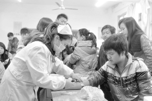 3月25日,保靖县中医院的医生在该县雅丽中学为高三学生体检。为确保体检工作顺利进行,保靖县实行上门体检为今年高考学生服务。