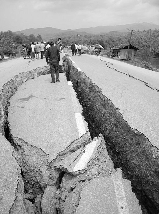 3月25日,在缅甸大其力以北60公里处的大乐,路面被地震震裂。 新华社发(梁春生 摄)