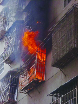 ▲熊熊大火从三楼窗口向四楼蔓延。