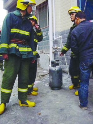 消防队员第一时间冲进熊熊大火的居民家中,搬出液化气瓶。