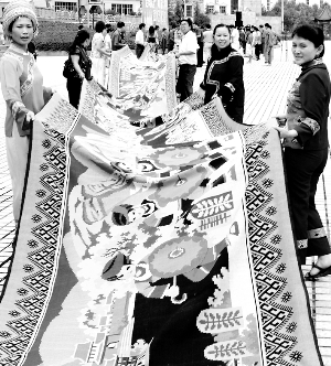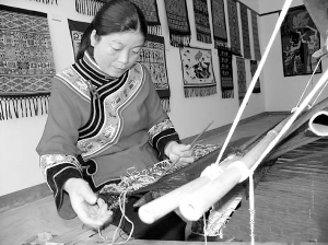 田二文 2010年10月中旬,在山东省济南市举行的首届中国非物质文化遗产博览会上,我省选送的“土家族织锦技艺”获得博览会优秀作品金奖。世居武陵地区的土家族,是一个精于纺织的民族,土家织锦便是土家族的传统工艺品,也称“西兰卡普”,以其独特的工艺和美妙的构图被列为中国五大织锦之一。 土家妇女擅长纺织很早就见于史籍,早在4000多年前,土家先民就掌握了简单的纺织技术。秦汉至三国时期,土家人逐步掌握了比较先进的染色技艺,能够编织出五彩斑斓的“土锦”,至唐代工艺已十分精湛,《溪蛮丛笑》描绘它“绩五色线为之,纹彩斑斓可观。俗用为被或衣裙,或作巾,故又称峒布。”宋代以后,土家人的纺织技艺已相当成熟,能够用丝经棉纬织造色彩绚丽、工艺精巧的织锦──“西兰卡普”。 “西兰卡普”的编织是在机床窄小的手工织布机上,用棉线为经,各种色彩的丝、棉、毛线为纬,采用挖花工艺,手工挑织而成。“西兰卡普”体现了粗犷洗经练、结构饱满、色彩艳丽、图案奇特的艺术效果,其图案多用直线造型,连续对称,呈单一型的演进变化,仅传统图案就达两三百种。其图案设计独特、造型奇异、生动逼真,真实地反映出土家族的生活、历史、风俗习惯,表现了土家人对自然和生活的热爱。“西兰卡普”注重色彩的对比与反衬,强调一种艳而不俗、清新明快和安定祥和的艺术效果,展现出土家族豪放、粗达的民族性格。 在土家族习俗中,土家姑娘从十一二岁起开始学织“西兰卡普”,结婚时须有自己织出的“西兰卡普”做嫁妆。土家族女子没有不会“织花”的,往往是有几个女子便有几台织机。遗憾的是,“文革”期间,许多织机被毁了做柴烧,以织锦为生的艺人也被当做割资本主义尾巴的对象被赶下织机。 改革开放后,为延续土家族的千年文明,一些民族文化工作者、民间艺人开始对土家织锦进行挖掘和整理,这其中,龙山县苗儿滩镇叶家寨人叶玉翠功不可没。叶玉翠9岁上机学织,至上世纪80年代初,经她整理出来的土家织锦传统纹样达100多种,1988年她被授予“中国工艺美术大师”称号。她还把传统工艺与现代生活结合,设计制作了“老鼠嫁女”、“迎亲图”等一大批织锦佳品。1987年,省工艺美术研究所承担的北京人民大会堂湖南厅20平方米壁画《岳阳楼》及1990年承接的长沙火车站正厅170平方米巨幅织锦《武陵胜境》,均是邀请叶玉翠的弟子来长沙织造完成的。她的作品还漂洋过海,让神奇美丽之花绽放在异国他乡。 近几年随着民间文化保护工程的启动,土家织锦迎来了传承发展的春天。2006年,土家织锦技艺被列为我国第一批国家级非物质文化遗产名录。现在,龙山、保靖、永顺、古丈等4个土家族聚居的县,均制定了土家织锦保护规划,摸清了土家织锦的传统纹饰图案,并划定生态文化保护区。叶水云等土家织锦的新一代传承人又涌现出来。叶水云系叶玉翠的侄孙女,12岁拜姑婆叶玉翠为师,学习土家织锦技艺。20多年如一日的不懈追求和痴情坚守,使她从一个普通的土家女子成长为国内知名的土家织锦技艺艺术家。2007年,她的代表作《宴乐狩猎图》被国家博物馆永久收藏。同年,她成为“土家织锦技艺代表性传承人”。 湘西自治州把开发利用土家织锦作为保护非物质文化遗产的重要途径,走土家织锦产业化的道路。一方面创新土家织锦图案,充实和丰富土家织锦的艺术表现和文化内涵,另一方面拓宽织锦产品领域,让其渗透到人们生活的方方面面,承载起新的时代使命,将单一的“土花铺盖”发展为各类壁挂、背包、织锦衣、地毯、沙发垫、小车坐垫、室内装饰等现代生活用品。成立了我国第一家土家织锦协会的龙山县,在协会的组织和调配下,全县此项产业年创收亿元以上。 |