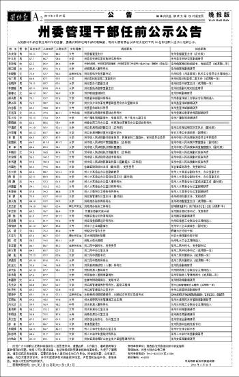 州委管理干部任前公示公告
