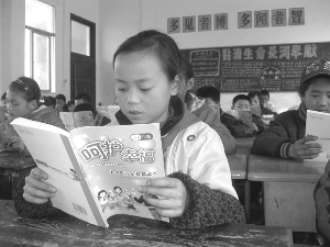 4月7日,龙山县红岩溪镇中心小学学生正在认真阅读湘西版《呵护幸福———小学生安全教育读本》。湘西版《呵护幸福———小学生安全教育读本》由中小学生安全教育读本编写组编著,湖南少年儿童出版社出版发行。该读本遵循贴近学生、贴近生活、贴近时代的原则,介绍了和小学生生活、学习密切相关的社会安全事故、公共卫生事件、意外伤害事故、网络安全、自然灾害和校园安全事故的预防和应急避险措施,注重实践性、实用性和实效性,有利于广大小学生掌握。 尚道林 摄
