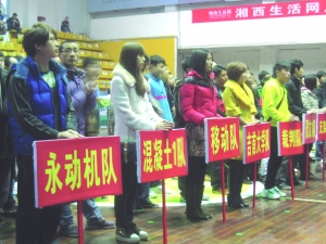 4月8日,参加2011年吉首市室内5人制足球超级联赛的队伍,在砂子坳体育中心体育馆举行开幕式。此次由州体育总会主办、州足球协会协办、吉首市足球协会承办的该足球赛事共有该市12支足球俱乐部球队参赛,采取双循环积分排名制,将在138场比赛中角逐联赛冠军。