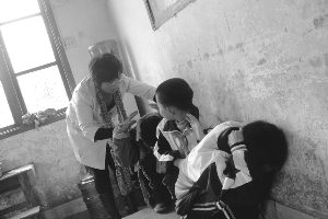 4月12日,龙山县华塘小学利用小学生安全教育读本常识,在校内开展以“珍爱生命、呵护幸福”为主题的读书教育活动。让学生增强安全防范意识,确保学校安全零事故。图为501班老师教学生发生踩踏事故后如何有效地保护自己。 叶海英 龙先铭 摄