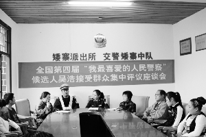 4月21日,“我最喜爱的人民警察”评议座谈会在“国内最牛的交警中队”工作地矮寨举行。候选人———吉首市交警大队矮寨中队长吴浩,向30多名来自社区群众、司机、网友各行各业的代表面对面汇报工作。会上,大家高度肯定了吴浩及他带领的矮寨中队舍小家为大家,历尽艰辛,默默奉献的优秀品质和敬业精神。