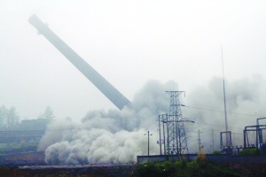 4月21日上午,永顺县万坪镇原火电厂发电厂房和烟囱等建筑群成功实现爆破拆除,标志着该县发展绿色能源经济和节能减排工作又取得了实质性的进展。