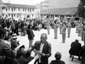 4月20日,永顺县吊井乡农民文艺宣传队利用山歌、三棒鼓、打溜子等传统节目,为百姓义务演出,发放宣传资料,宣传计划生育、禁赌禁毒、安全生产等知识,构建和谐乡村,深受百姓欢迎。