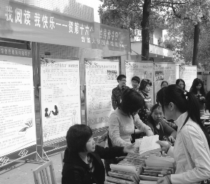 文/王月娥 图/张 旭 4月23日,为庆祝第16个“世界读书日”,积极营造书香浓郁的和谐文化氛围,推动全民阅读,吉首大学图书馆联合吉首大学师范学院图书馆、湘西州委党校图书馆、吉首市民族少儿图书馆、湘西州移动公司,分别在吉首大学校园和吉首市沙子坳社区团结广场开展了主题分别为“读书,给人智慧,使人勇敢,让人温暖”和“城市因阅读而美丽,人生因阅读而精彩”的系列阅读活动。 此次活动内容丰富,形式多样,策划新颖。活动内容主要有读书征文、图书推介、数字资源推介、信息服务推介、阅读状况问卷调查、评选优秀读者、有奖猜谜等活动。 近年来,吉首大学图书馆特别注重阅读推广,多次在校园内和吉首市矮寨镇德夯村、凤凰县阿拉营镇等乡镇开展阅读宣传活动。通过阅读系列活动的开展,吉首大学图书馆在搞好全校师生阅读服务的同时,积极为地方文化和社会经济发展提供阅读服务,推动城市阅读文化建设,提高城市文化品位和市民的文化素质。 |