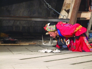 本报讯(记者 周 通讯员 黄雅婷)5月1日,大型原生态文化组合表演“太阳树”在吉首市乾州古城掀起高潮。土家摆手舞、苗族扭巾舞、打溜子、苗鼓等节目,在各级非物质文化遗产传承人的手中得以完美展现,一场独具土家族苗族文化特色的演出让游客惊叹不已,流连忘返。 演员们由缓而急地击打起手中片石、苗鼓。音乐伴随着精彩的表演让置身其间的游人仿佛进入了那个古老而朴实的年代。铿锵有力的苗鼓声更将整个活动的气氛推至高潮,土家族哭嫁表演让观众感受到土家女儿的细腻情感,悠扬的牛角胡琴演奏更让许多游客忍不住拿起手中的手机、相机连续拍摄。一个多小时的表演在声势浩大的土家摆手舞中谢幕。 本次演出以天、地、人3个篇章展现独具特色的土家族苗族文化。据该活动负责人介绍,本次参加的演员多为各项目遗产的传承人,年龄最大的有92岁,平均年龄65岁。今年72岁高龄的土家摆手舞传承人张明光说:“民族文化必须发扬光大,更要传承给子孙后代。今后我还要参加这类活动。” 据乾州古城办非遗管理处主任姚方介绍,截至目前,古城共进驻了14位各级非遗传承人,同时被列入国家级和省级非物质文化遗产保护名录的100多项非物质文化遗产也已经陆续开展,今后乾州古城将逐步成为一扇展示湘西民族文化的窗口。 |