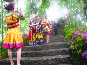 本报讯(记者 向汉品 岳跃强 孔黎明)这是黄永玉亲手绘就的首幅大地艺术巨画,大师以南华山为画布,以中华凤凰文化为主题,在山水之间创意架构,成就了这一艺术杰作,这幅巨画就是凤凰南华山神凤文化景区。5月12日,黄永玉这一特殊的艺术杰作撩开了面纱,神凤文化景区宣告试营开业,惊艳现世。黄永玉亲临现场揭幕,众多的旅游界及媒体界人士游园观景,感受大师的大地艺术,领略南华山绝佳山水,体味景区精心打造的神凤文化。 当天上午,在淅沥细雨中,景区开园试业仪式在凤凰古城虹桥西侧的南华山景区大门举行,原州人大常委会主任、州旅游协会会长龙颂江宣布开园试业;紧接着,在一阵纸花彩雨中,黄永玉放飞了象征和美、祥瑞的九只彩翼鸟。随后,大家拾级而上,沿着新修的游道,在细雨飘飞的山林间穿行,呼吸新鲜的空气,眼观浓郁的绿意,观赏最新的景点,体味久远的凤凰文化,并在南华山神凤文化景区核心圣地神凤殿观赏大型文艺表演———“和美凤凰”主题演出。 南华山坐落于凤凰古城南侧,山中古树成林、百鸟啼脆、沟涧清幽,山中更有无数挺拔的梧桐,像是印证着凤凰鸟“非梧桐不止”的上古传说,千百年来,这座山同她脚下蜿蜒的沱江水、凤凰古城相依相伴,直至如今。在凤凰古城游如火如荼的今天,为了进一步拓展凤凰旅游景点,丰富凤凰旅游内涵,做大做强凤凰旅游业,2005年,该县开始筹划神凤文化景区。2009年,神凤文化景区奠基,正式开工。从景区筹划到开园试业,黄永玉就全程指导规划、设计、建设,在南华山上挥洒自己的艺术,创构巨图,最终成就了现在的神凤文化景区。目前开放的景区涵盖有凤竹林海、有凤来仪、凤缘亭、引凤桥、百鸟朝凤、九九神阶、神凤殿、凤凰座、十八神性图腾柱、醴泉台等十多处与凤凰有关的主题景点,其间亭、台、殿、阁、廊、柱、桥、楼等尽皆蕴藉着凤凰文化,密集、形象、丰富地展现了中华凤凰文化的深邃厚重及神秘和美。此作被誉为黄永玉首幅大地艺术巨画。 启盛(凤凰)旅游有限公司副总经理姚源波介绍说:“神凤文化景区是中国首个凤凰文化全体验景区,目前建成的景区只是推出的首期作品。”一位同游的游客这样评价此次游历:“这既是一次生态之旅,又是一次文化之旅,更是一次灵魂之旅。大师点睛,非同凡响,从此,凤凰‘形神兼备’。” |