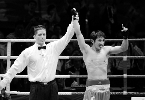 5月27日,王志敏(右)在赢得胜利后庆祝。当日,在贵阳结束的世界拳王争霸赛个人决赛61公斤级决赛中,中国北京龙队的王志敏战胜哈萨克斯坦阿斯塔纳狼队的叶尔然·穆萨菲罗夫,夺得冠军。 新华社记者 刘 续 摄