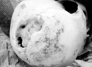 图为被阿根廷海关截获的一具头骨(摄于5月27日)。 新华社发