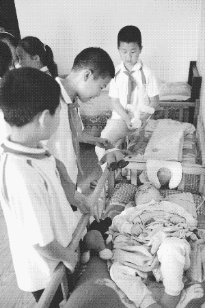 5月31日下午3点,吉首市民族实验学校四(7)班44名学生在本班老师及部分家长陪同下,走进州福利院,与那里的老人和孩子度过了一个难忘的儿童节。图为同学们看望福利院儿童。