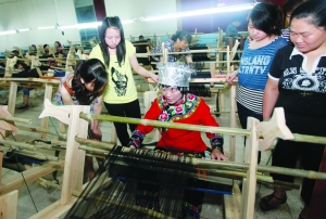 帮助400多名女工织出致富路 本报讯(记者 杨继东 )6月10日,由中国优秀织锦工艺传承人、湘西州非物质文化遗产代表性传承人黎秋梅创办的“秋梅土家织锦技艺传习所”在吉首正式开班,向首批招收的50多名学员免费传授土家织锦技艺。 土家织锦是全国四大织锦之一,土家语称之为“西兰卡普”,是首批国家级非物质文化遗产保护项目。黎秋梅从16岁开始,师从全国工艺美术大师叶玉翠学习土家织锦织造技艺。于1996年在龙山县城民安镇开办了第一家“西兰卡普织锦厂”。 2009年,应邀参加了美国费城纺织工坊美术馆的艺术展览。2010年,在龙山县开办了第一个土家织锦技艺传习所。 当日在吉首开班的传习所,共添置了52台新织机,有50多名下岗女职工和农民织锦女学习、从事土家织锦的织造。“我要把技术传授给姐妹们,让传统土家织锦技艺代代相传……”黎秋梅介绍。目前为止,通过传习所这一平台,已经培养土家织锦学员400余人,使一大批下岗职工和农村妇女实现再就业。同时,她相信吉首交通便利、市场广阔,在这里开办的传习所一定会越来越红火。 出席开班仪式的相关部门负责人表示,要在建立和完善土家织锦保护和利用制度体系的基础上,加强政策引导,积极争取专项资金支持,将土家织锦艺术发扬光大。 |