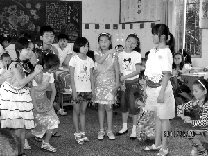 近期,吉大师院附小鼓励学生把一些课文和童话故事改编成剧本进行表演,不但提高学生的读书兴趣,深化学生对作品的理解,同时还提高学生的艺术表现力和创造力。图为四(5)班学生在兴致勃勃地表演课本剧《西门豹》。