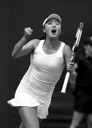 6月24日,彭帅在赛后欢庆胜利。当日,2011年草地大满贯温布尔登网球公开赛女单第二轮补赛,中国选手彭帅对阵英国选手巴尔塔查。最终,彭帅在4比6先输一盘的情况下,以6比2、7比5连下两盘,逆转晋级,这也追平了她在温网的最佳战绩。彭帅将以金花独苗的身份在第三轮迎战淘汰斯托瑟的匈牙利好手辛克。