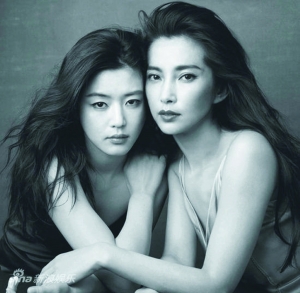 近日,李冰冰、全智贤携手登上了美国杂志《VOGUE》7月刊。而为她们掌镜的,是全球最贵的肖像摄影师安妮·莱波维兹,足见《VOGUE》对这组大片的重视程度。值得一提的是,最近一次亚洲影星登上美版《VOGUE》,还是6年前出演《艺伎回忆录》的巩俐和章子怡。图为李冰冰全智贤《VOGUE》封面。(本报综合)