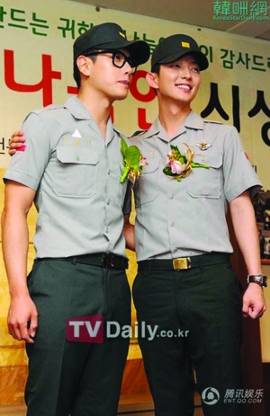 6月24日,正在服役的韩国演员李俊基和歌手朴孝信参加了在首尔举行的“这个月的爱心人士”公益活动。