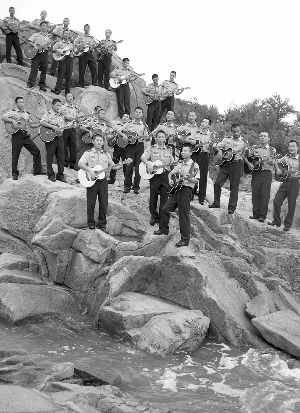 “八一”建军节前夕,由福建省厦门警备区驻角屿岛某部官兵组成的军旅“百人吉他队”在海边排演吉他合奏《角屿之歌》,为建军节献礼。