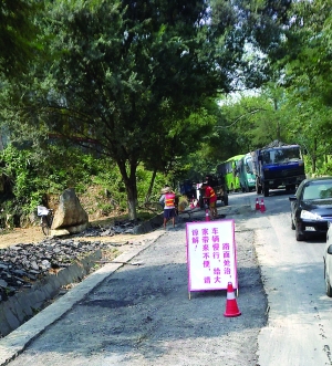 7月30日上午,工作人员正在G209吉首至凤凰路段施工。一周前,凤凰公路局开始对此路段进行修补。目前,破损路面的清理工作已接近尾声;31日起,将开始填充作业。据介绍,此次修补面积达数万平方米,计划在8月20日前完工。凤凰公路局的工作人员提醒司机朋友,过路时一定要注意路面警示牌,减速行驶。