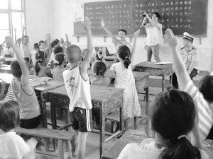 7月26日,湖南师范大学商学院青年志愿者协会赴凤凰暑期社会实践团与凤凰县交警大队一起,在该县千工坪乡通板小学联合开展交通安全主题活动。活动主要以交通知识讲座、交通知识竞答及趣味交通游戏“红绿灯”三种形式开展。在知识竞答环节中,孩子们根据交警教授的相关知识积极踊跃回答,交通安全教育效果明显。