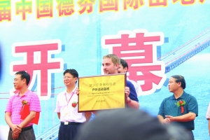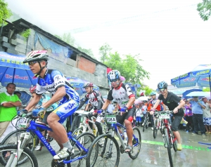户外铁人三项比赛的选手在起点处出发 记者 张 谨 田宏贵 实习生 王继伟 摄
