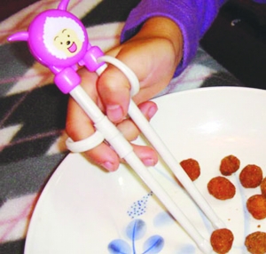 许多年轻父母总喜欢让孩子用汤匙吃饭,而不让孩子用筷子,怕不安全,以至于有些孩子上小学后还不会使用筷子。其实,用筷子吃饭对儿童的大脑和手臂是一种很好的锻炼。医学家经过多年的研究发现,用筷子夹食物可牵涉肩部、手掌和手指等三十多个关节和五十多块肌肉的活动,而且和脑神经也有密切的联系。用筷子吃饭夹食,不但可以使人手巧,同时还起着训练大脑的作用。特别是和上肢相关的大脑神经,可以使脑子更加灵敏和迅捷。 为了使您的孩子更聪明健康,年轻父母们切不可忽视对孩子使用筷子的训练,在孩子3岁之后,就要尽早让他学会用筷子吃饭。 对初学用筷子的宝宝,父母应细心注意到以下几点: 1)选用竹筷,因为方形竹筷易夹住食物,而且无毒、轻便,易握紧。 2)食物选用爆米花,很轻,上面有沟槽和裂缝,容易夹起来,又会刺激孩子去练习。 3)允许“作弊”。可在筷子尖上缠一根皮筋,增加摩擦力。 (新 华) |