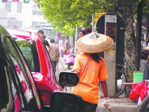本报实习生 潘 欢 通讯员 袁瑜瑜 杨 勋 她,戴着斗笠,半弯着身子,握紧扫帚,将一夜积累下来的果皮、塑料袋、废纸等顺着下坡的马路扫到拐弯处,来回扫了两三次,将垃圾扫成一堆后,用撮箕装了两次才装完。 吉首火车站西环路街道上人来人往,车如流水。8月4日上午9时,阴云笼罩着太阳,空气中散发着逼人的闷热。走近她时,她仰起脖子“咕噜咕噜”地喝水,一瓶满满的瓶装水被她一口气喝掉了大半。当她听说笔者的来意后,盯着笔者看了好一会儿,然后微微一笑,满脸的不好意思,接着将手上已泛黄发黑的白色工作手套脱下来。 她叫陈菊香,来自泸溪县达岚镇麻坪村,今年47岁,是吉首市环卫处负责西环路清扫保洁工作的工人。 原本有些拘谨的她在笔者的追问下,才打开话匣子。她告诉笔者,每天早上5点钟就赶到这里清扫,7点钟完成整体清扫后,接下来就是保洁,一直到下午2点钟才下班,每天工作8小时。 陈菊香的丈夫在1996年因脑溢血造成偏瘫后,家里变得很困难。2006年,为了供2个孩子读书,她与丈夫离开家乡来到吉首,干起了环卫这个工作,“刚上岗的那一个星期,我的手天天都会起水泡,连推车都不会,后来慢慢也习惯了,”陈菊香说到家里的情况,脸上始终带着羞怯的笑容,“现在丈夫身体已好转了,并且能干一些力所能及的事了,并且也到环卫处上班了,专门接替我的下午班,我们夫妻俩轮流负责这一路段的清扫和保洁工作。” 交谈之中,她突然拿起扫帚,走到不远处的一个早餐店门口,将一个白色的塑料袋扫入提在手中的撮箕里,接着,将行人倒在地上的一碗粉条扫入撮箕…… “这里刚刚才扫完,现在又有这么多垃圾了,其实,环境卫生还是要靠大家一起维护,”她无奈地向笔者说,“前几天这个时候都是三十五度左右的高温了,今天天气有点阴,还受得了。我们不是怕热,再热也要守着;我们怕的是过路人乱丢乱甩垃圾。” 她右手拿着扫帚,左手提着撮箕,沿着人行道,扫扫停停。待路面稍微干净了,就休息一下,脏了,又走去清扫。 下午1点半左右,太阳开始露出来了,一家商店的大黄狗趴在店门口,吐着舌头,喘着大口的气。 在烈日的照射下,橘黄色的工作服将陈菊香黑黝黝的皮肤映衬得格外耀眼。此时的她,脸颊两边的头发已被汗水湿透,紧紧地贴在脸上。她将扫帚、撮箕、手推车放在街道旁的一棵树下,等待着替班人———她的丈夫。而她的丈夫从下午2点要工作到晚上10点多。 陈菊香与丈夫在石家冲地段租了一间月租金80元的地下室。每天下午回到家里后,休息一下,她要接着做晚饭、洗衣服。第二天凌晨4点钟起床,下碗面填肚后,她又要徒步赶到这里开始新一天的清扫工作。陈菊香徒步上下班,仅仅是为了省下几块钱的公车费。 望着她离去的背影,那抹橘黄色,在人群中格外耀眼。 吉首市环卫处负责人张启胜告诉笔者,目前吉首市有570名一线环卫工人,负责全市主干道和次干道的清扫、保洁及垃圾清运工作,清扫面积达到230万平方米。在酷暑中,他们仍然坚守在一线,清洁着这座城市。“虽然环卫处已采取各种防暑措施,但在这种高温的天气下,环卫工人中暑的情况时有发生。” 三伏天,气温已达到夏季之中的“巅峰”,当人们躲在阴凉处啃着西瓜或坐在空调房里喝着冷饮,享受着一丝丝清凉时,是否会想起烈日下还有这么一群人,他们挥舞扫帚,推着装满垃圾的手推车穿梭于人群车流中,默默清扫,擦亮着城市的每一个角落,为这座城市的整洁和美丽而奔走。 |