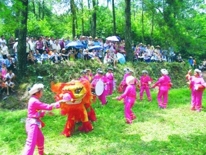 文/图 李焱华 任士泰 8月8日,农历七月初九,是立秋的第一天,依旧是“暑气逼人”。可是,在泸溪县梁家潭乡达力寨村一个叫“七月九”的山坡上,苗族同胞们却顾不得炎热、汗流浃背,从四面八方赶来,欢庆传统节日“七月九”。 人们以大树为柱,以帐篷为顶,杂草丛生的地面算是大家的舞台。台上,彩旗招展,锣鼓喧天,30多个丰富多彩的节目轮番上演。台下,观众席地而坐,把舞台围得里三层外三层,津津有味地欣赏着特色鲜明的原生态节目,看到精彩处,笑得合不拢嘴。 舞狮是本次活动的“开场白”。一帮朴实坚毅的壮汉或是美丽沉稳的女子,穿上狮子衣,就变成了一群充满灵气、果敢无畏的“活狮子”,使你折服,使你震撼。 妇女腰鼓队,成为当天节会的独特风景线。她们踩踏着幸福的鼓点,唱着自编的苗歌,唱出了苗寨的巨变。 老人对山歌,可以说是这次活动中最原生态的节目。老人们,用古老的苗语唱着他们遥远的爱情故事。一曲唱罢,他们那写满岁月沧桑的脸上,洋溢出了久违的激动和喜悦。 活动中,最引人注目的,当属达力寨村本土剧团———“泸溪县金凤凰歌舞团”表演的《七仙女》。七位漂亮女子身着彩衣,头戴金钗玉簪,或翩翩起舞,或动情浅唱,时而坦荡荡,时而羞答答。道具师不忘放出白色烟雾,顿时,这里幻化成了人间仙境,果真是“七仙女下凡”了。观众欢呼,礼炮鸣放,活动达到了最高潮。 据老人们说,“七月九”与“七月八”苗族节日一脉相承,其来历是,古时候由于这里交通极其不便,到泸溪天桥山上庆祝“七夕”情人节的人们,当天赶不回家,七月初八宿在洗溪峒头寨,初九宿在梁家潭达力寨,受到当地苗族先人们的盛情招待,后来便形成了值得欢庆的节日。 可以说,达力寨“七月九”节日是对“七夕”情人节的延续。 |