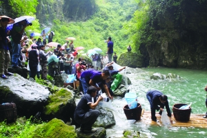 文/ 黄益民 图/张承印 黄益民 陈 阳 今年的8月8日,是湘西苗族群众传统的“赶秋节”。这天,地处吕洞山区腹地的保靖县夯沙乡举办了湖南省风景名胜区吕洞山风景区揭牌庆祝活动,来自大吕洞山区吉首、花垣、保靖三县市的万余名苗族同胞参加了庆祝活动。 吕洞山的主峰坐落在夯沙乡吕洞村,海拔1227.2米,因其裸露的崖壁上有两个巨大的穿洞嵌入,如一个半倒的“吕”字而成名。吕洞山区莽莽的云山雾海,峡谷中如帘的瀑布群和秀美如画的苗寨等自然风光和民族风情吸引着越来越多的人们观光旅游,在吕洞山游玩,既亲近自然又体验了富有民族特色的苗乡生活,是一种旅游的时尚。 吕洞山如深藏在武陵山脉中的闺秀,开启她的旅游经历了三个重要阶段。一是艺术家采风。由于吕洞山风光险奇,人文独特,苗寨保护完好,大批艺术家前来采风,大量的图片传至网络,从而让更多的人认识了吕洞山。二是州县乡党委政府的大力推动。2009年2月,州委书记何泽中就把吕洞山腹地的夯沙村作为自己的扶贫联系点,他要求乡村干部群众要保护好山保护好水保护好苗寨,说这是脱贫致富的宝。从此,吕洞山区旅游规划开始启动,加大投入建设旅游基础设施,开发旅游产品,实施“三村千户苗寨”保护行动,每年对吕洞山区旅游开发综合投入1000万元以上。三是创建省级风景名胜区。吕洞山旅游基础相当薄弱,创建之路十分艰难,除了克服基础设施建设资金短缺之外,景点开发,接待能力提高,服务水平提升等大量的工作都是创建成功的必由之路,就是这一方山水这一方人,凭着朴素的理念和顽强的精神,终于完成了这一申报过程。省政府批复吕洞山为省级风景名胜区,标志着保靖县的旅游产业从无到有,是该县旅游产业发展的里程碑。今后的方向更加明确,就是要通过更大的努力,全力打造“苗疆圣山·吕洞秘境”的全新概念,力争早日通过国家级风景名胜区的评估。 在为期三天的庆祝活动中,吕洞山区各乡镇苗族同胞以自己民族节日的热情,参加了苗歌、苗鼓比赛,表演了巫蛊文化和民间绝技,赶了一回“万人边边场”。 |