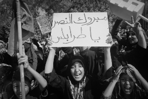 当日,的黎波里市内安全局势有所改善,少数市民走上街头庆祝卡扎菲时代的结束。