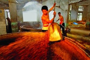 我问老龙酿酒中哪个环节最关键。老龙说每个环节都关键,不能出一点差错。我再问他凭什么把酒酿得那么好。他笑了笑,意味深长地说了十个字“技术、经验、原料、设备、曲子”。他说技术、经验、原料和设备有人不比他差,但曲子不同,他用的曲子是家传的、独一无二的,曲是酒之魂,谁都知道好曲酿好酒,他家的酒好,曲子自是非同一般。