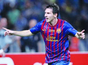 8月27日,巴塞罗那队球员梅西在比赛中庆祝进球。当日,2011欧洲超级杯在路易二世球场展开争夺,冠军联赛冠军巴塞罗那2比0力克欧联杯冠军波尔图,梅西首开纪录后助攻替补出场的法布雷加斯锁定胜局,罗兰多和瓜林在最后时刻先后被罚下。巴萨第4次夺得欧洲超级杯。这是瓜迪奥拉执教巴萨的第12座奖杯,他也是首位两夺欧洲超级杯的西班牙教练。 据新华网