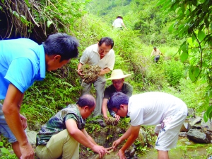 9月初,该村安全饮水工程正式启动,工作组与县水利局技术员一道,进入深山勘察水源,初步敲定了饮水工程设计方案。 周胜军 摄